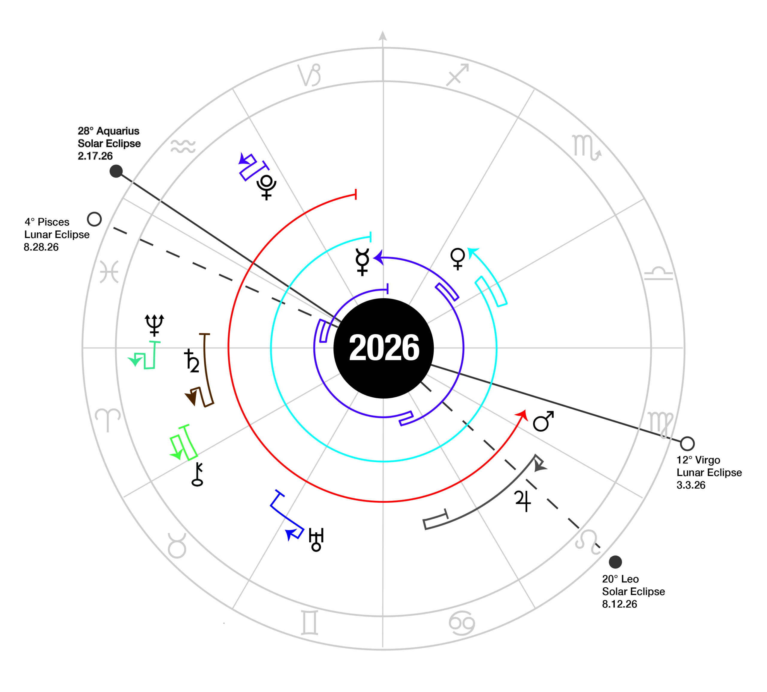 This laminated, 2-sided, 17″ x 11″ Desk Calendar provides a complete astrological overview of 2026 at a glance.